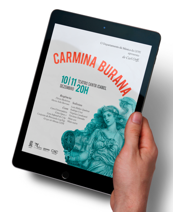 Considered one of the most notable compositions in classical music history, "Carmina Burana" was performed by the Opera and Repertoire Academy of the Federal University of Pernambuco at the historic Santa Isabel Theatre, with the Sinfonietta and the Children's Choir of the Opera de Papel. During my internship in the Design Department at the Federal University of Pernambuco's Office of the Dean, I was responsible for creating the visual identity, as well as the invitation, external banner, tickets, program, and Facebook event cover.